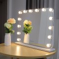 ◎????3 Colors changeable & Adjustable Brightness: The professional plug in light-up hollywood mirror with 3 adjustable color lighting modes (Warm Light/Natural Light/Cool Light) by 14 PCS dimmable Led bulbs ensures your makeup look flawless and charming. You can check your beautiful makeup under different lighting conditions. With 50, 000 hour life span of the led bulbs, you don't need to worry about bulbs burning out. Note: LED bulbs are embedded, non-replaceable.