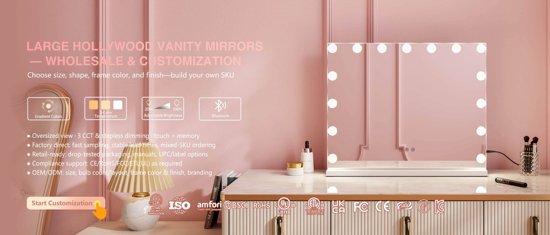 Customize your brand's vanity with wholesale cosmetic mirrors from DAPAI Mirror. Perfect for cosmetic brands and manufacturers looking to offer customers a complete beauty experience.